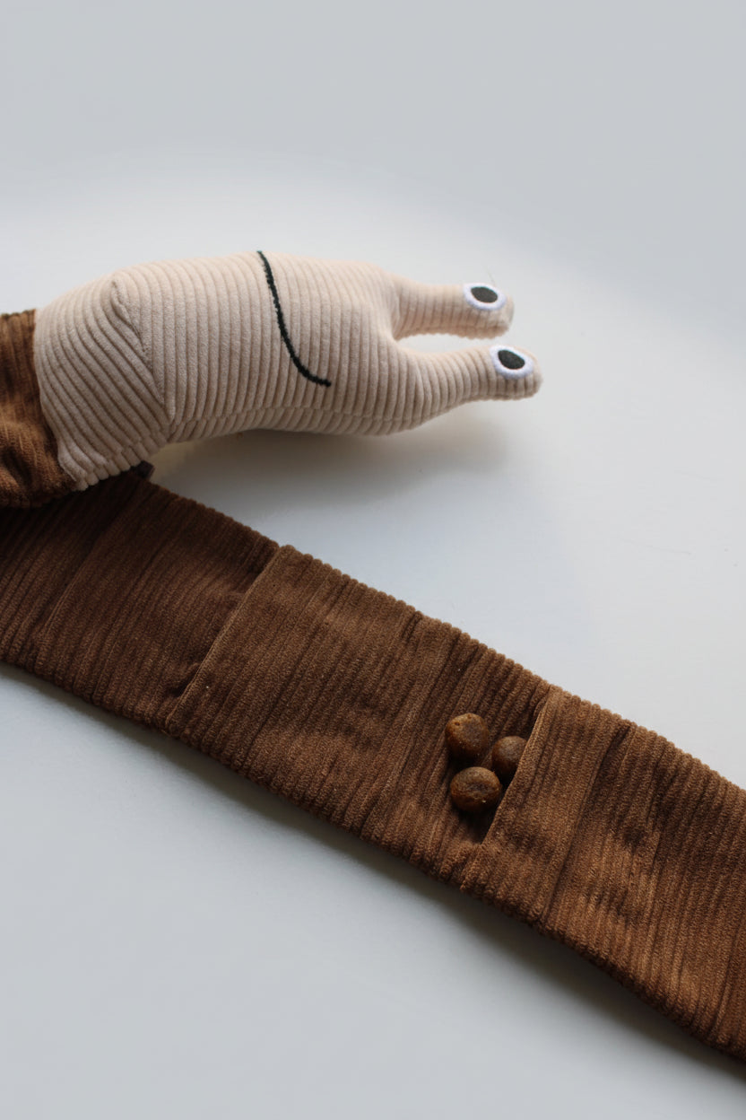 Onze Snuffelknuffel Mila is niet alleen heerlijk om mee te knuffelen, maar ook perfect voor mentale uitdaging. Rol de slak uit en verstop snoepjes in de speciale vakjes. Daarna mag jouw hond snuffelen, zoeken en ontdekken waar alle lekkernijen verstopt zitten.